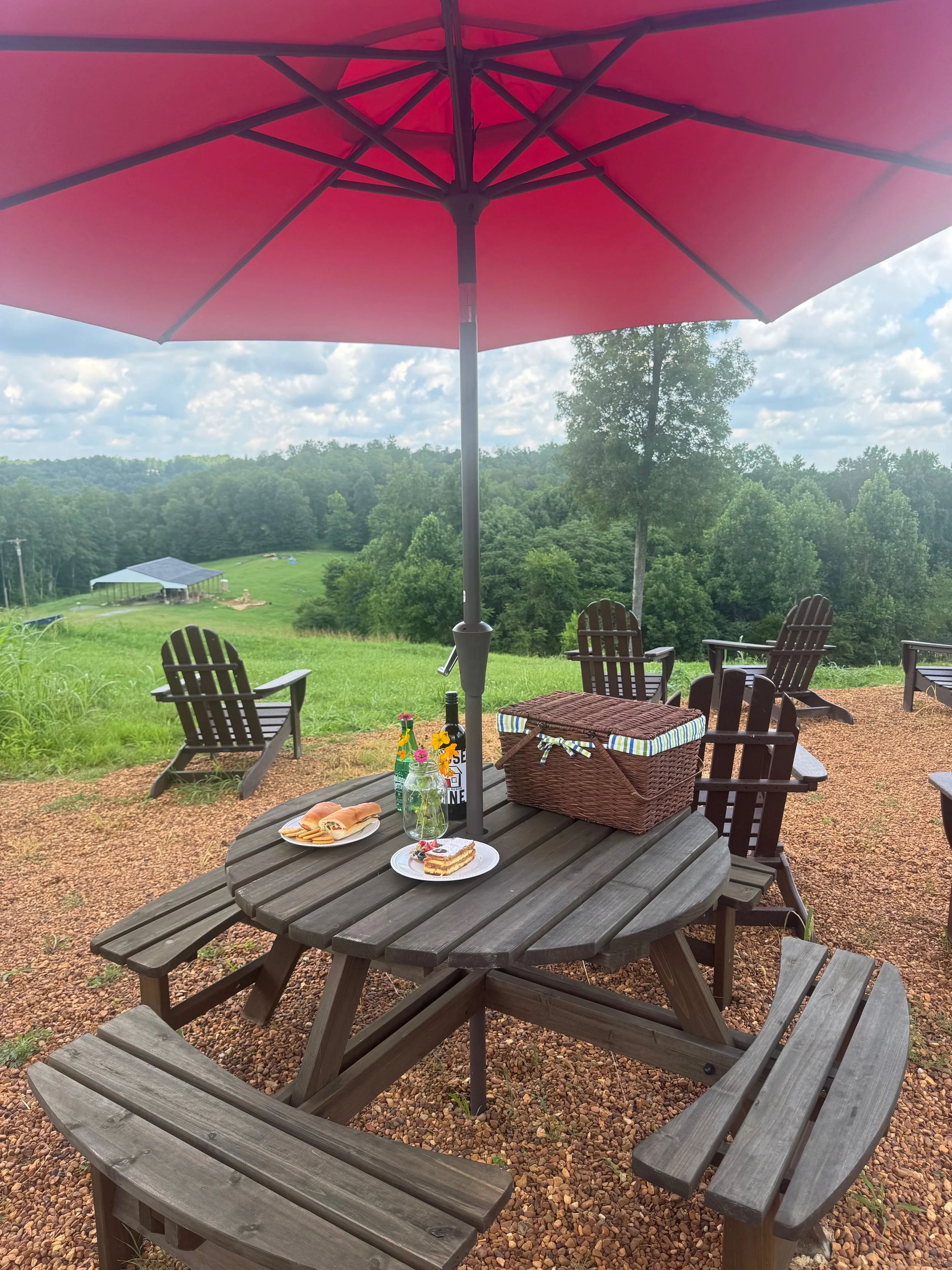 We have picnic tables, shade and cornhole for adults, feel free to bring a picnic, and it’s always byob.